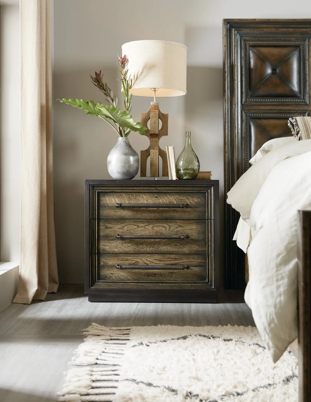 Hooker Furniture Bedroom Crafted Metal Wrapped Three-Drawer Nightstand
