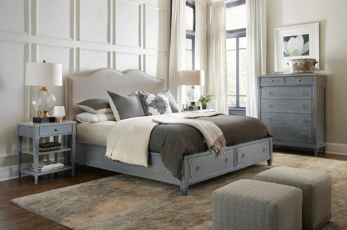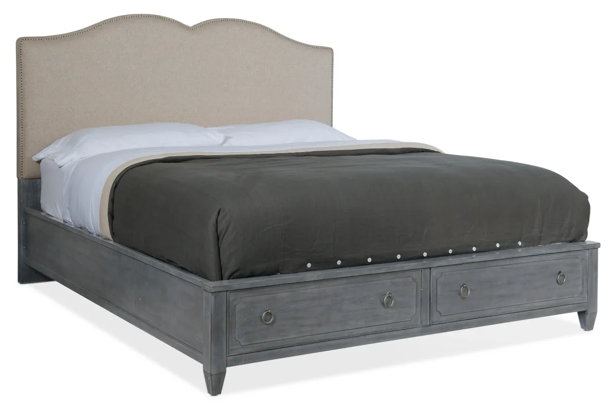 Hooker Furniture Bedroom Hamilton King Upholstered Panel Bed w-Storage Footboard