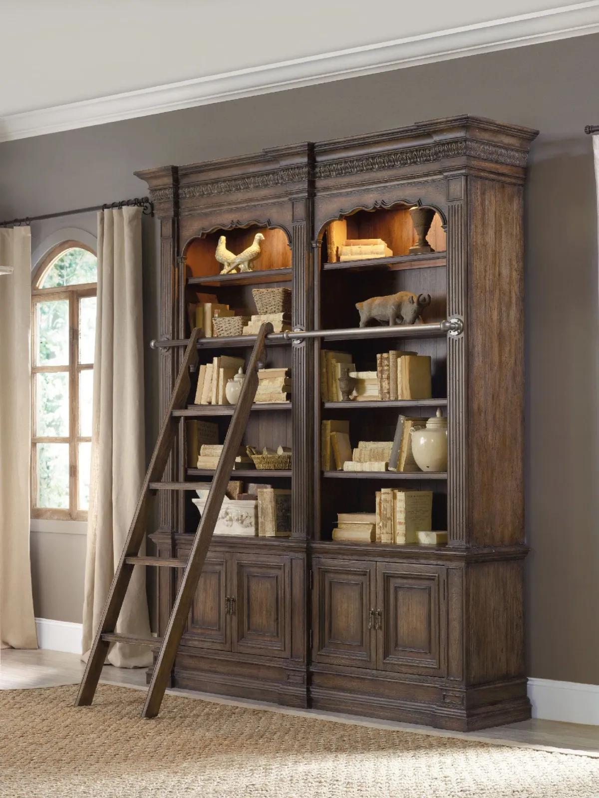 Hooker Furniture Home Office Rhapsody Double Bookcase with Ladder and Rail