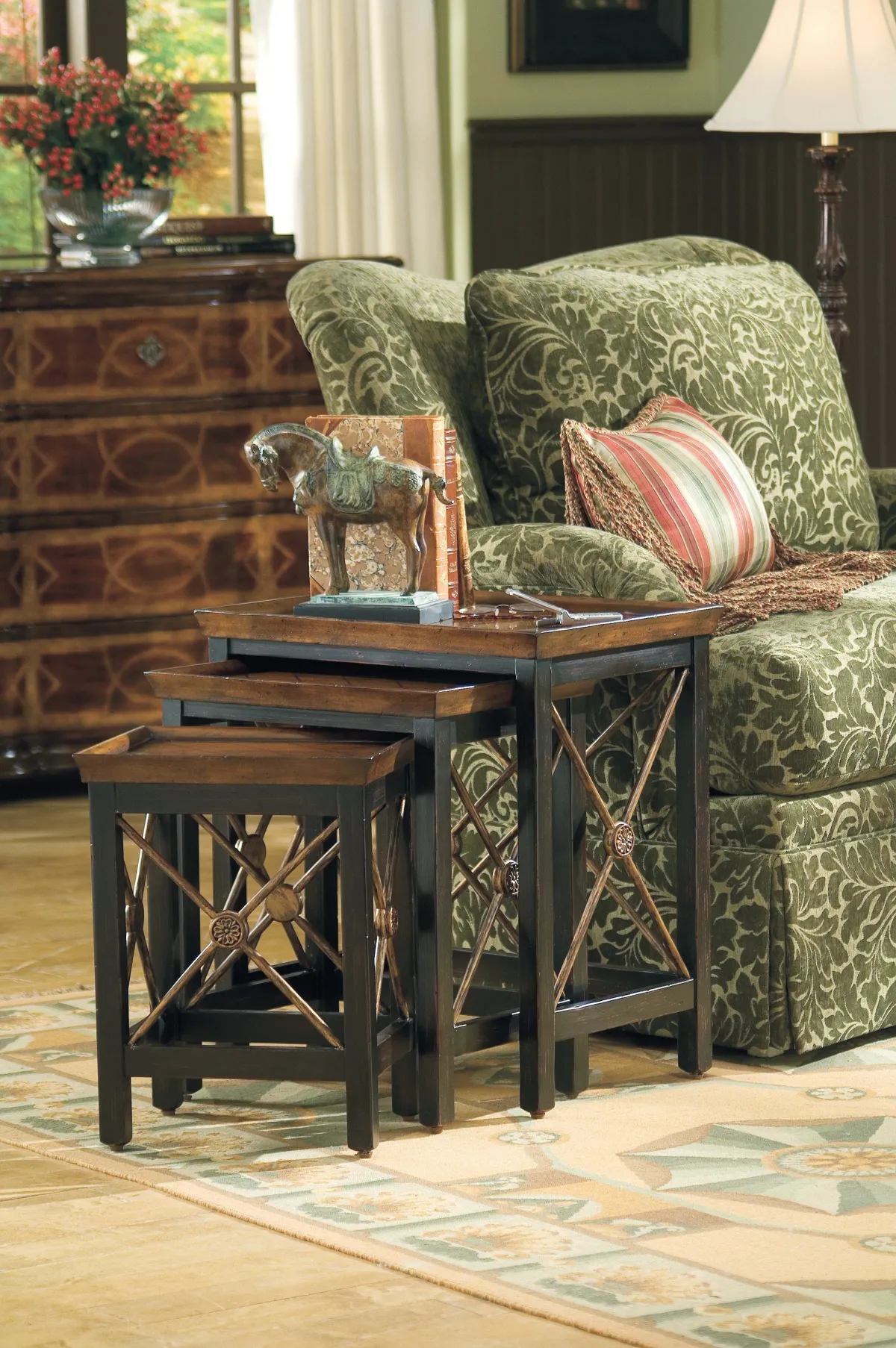 Hooker Furniture Living Room Nest of Three Tables w/Medallion Motif