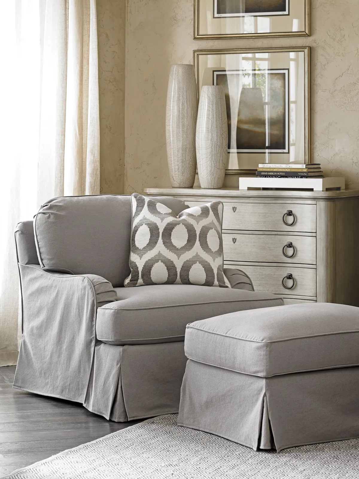 Oyster Bay Stowe Ottoman Slipcover - Gray