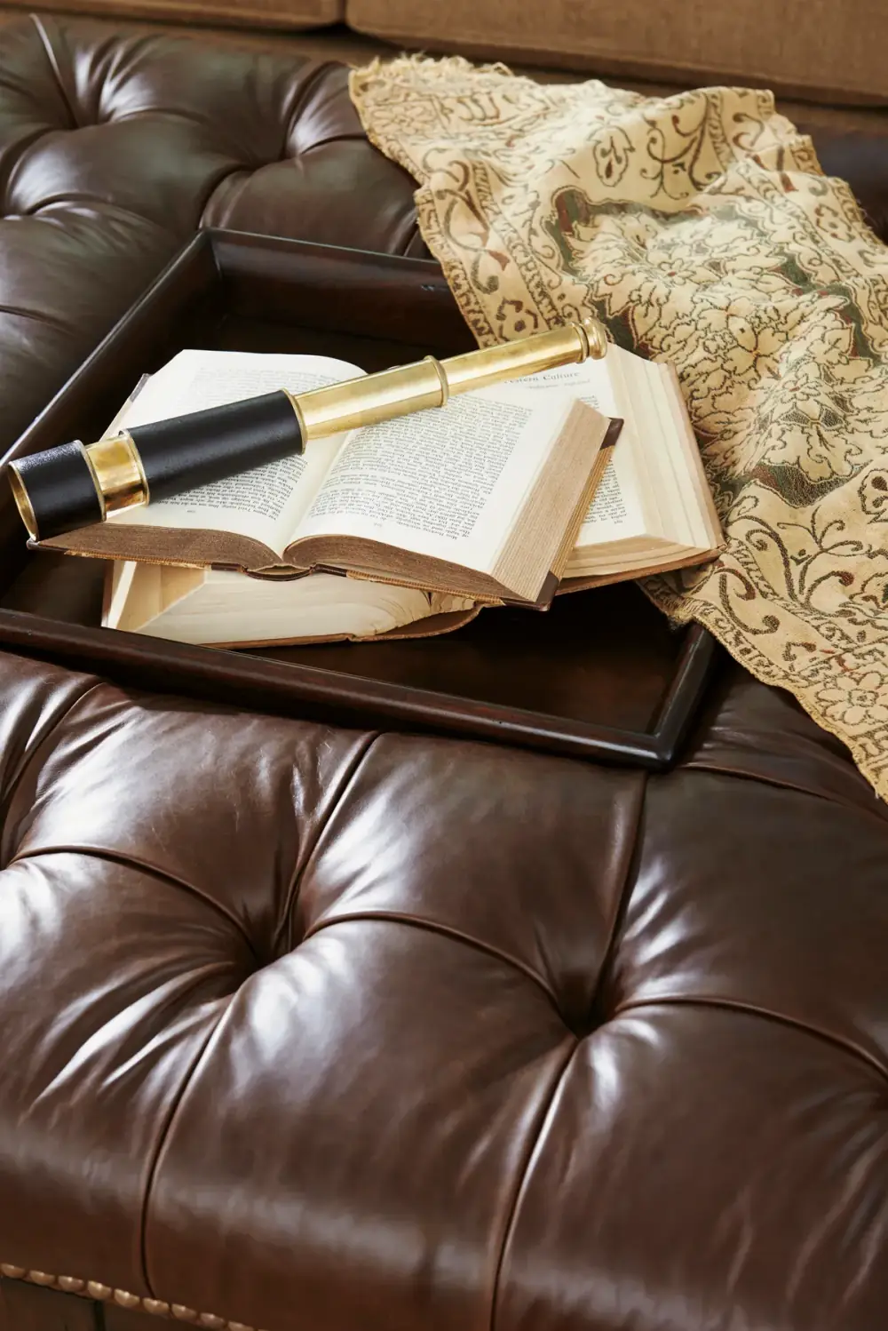 Tommy Bahama Upholstery Heather Leather Cocktail Ottom
