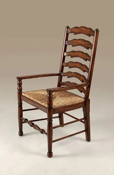 Umber Finished Mahogany Ladderback Armchair, Abaca Rope Rush Seat