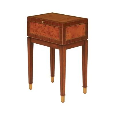 Yew Wood Parquetry Box on Regency Finished Mahogany Stand, Brass Mounts