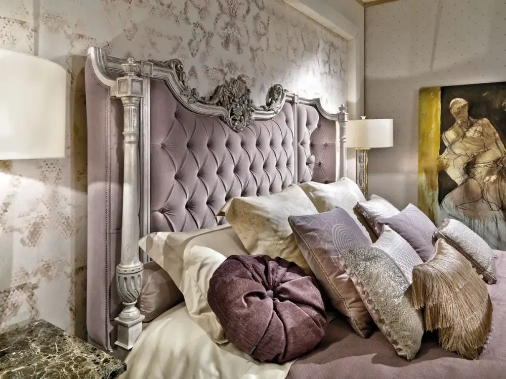 Handcarved bedside table with marble top