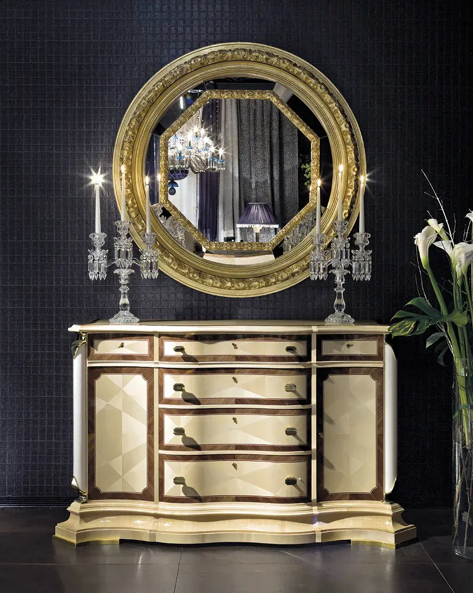 Maple chest of drawers with marble and brass details