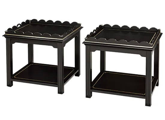 Scalloped Lamp Table, Wood Top